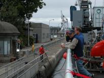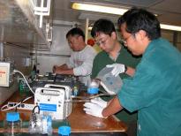 Joseph Chao, Weiwen Zhang. and Weimin Gao of ASU prepare water samples.