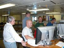 Collaborative effort to process the EM-300 sonar data in the main lab.