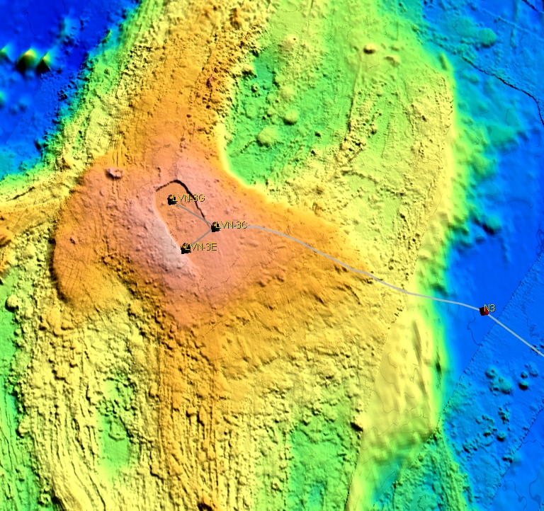 Node 3, Axial Seamount. Bathymetric data provided by NOAA.