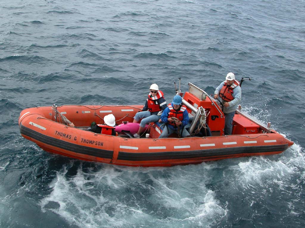 The small boat crew of R/V Thompson recover a Sea Glider.