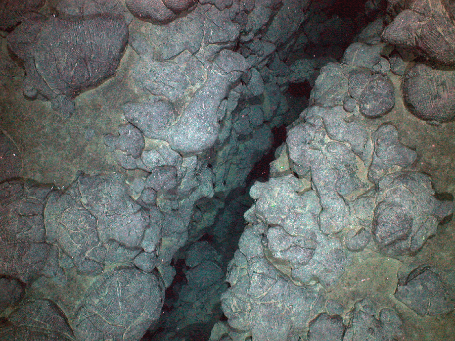 Title: Narrow fissure cuts lobate and pillow flow